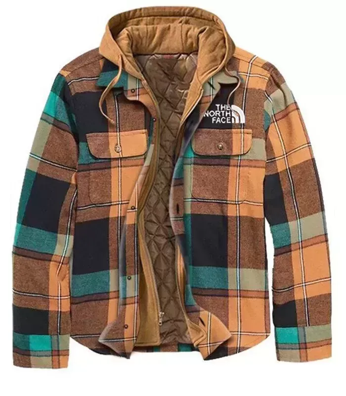 Multicolor Color Block Print Fashion Men's Hooded Coat