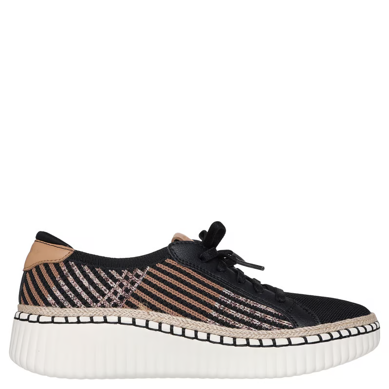 Take a walk on the stylish side in easy-wearing comfort with Skechers Wilshire Blvd - Breezy Stroll. This vegan Skechers No Tie Fit® design features a knit and synthetic leather upper with faux laces, jute trim along the midsole, a Comfort Pillow at the heel, and a cushioned Skechers Air-Cooled Memory Foam® insole.