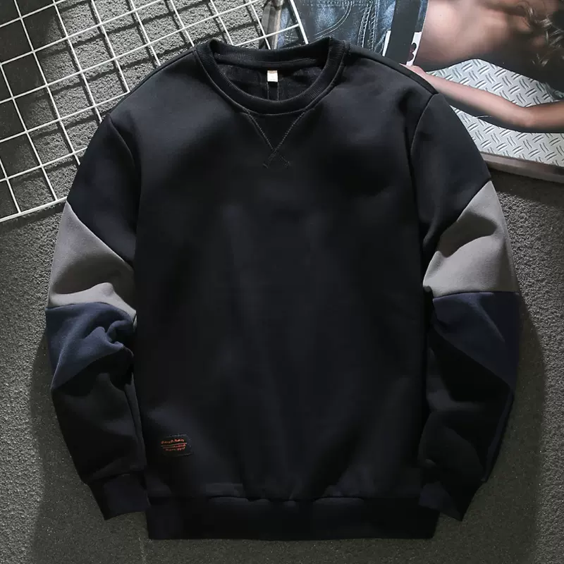 American trendy autumn and winter new sweatshirt men's loose color-blocked long-sleeved velvet thickened casual round neck pullove