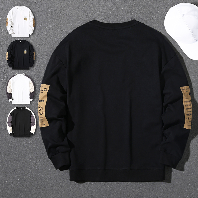 Handsome round neck pullover sweatshirt for men 2023 autumn and winter trendy letter printed long-sleeved patch loose top