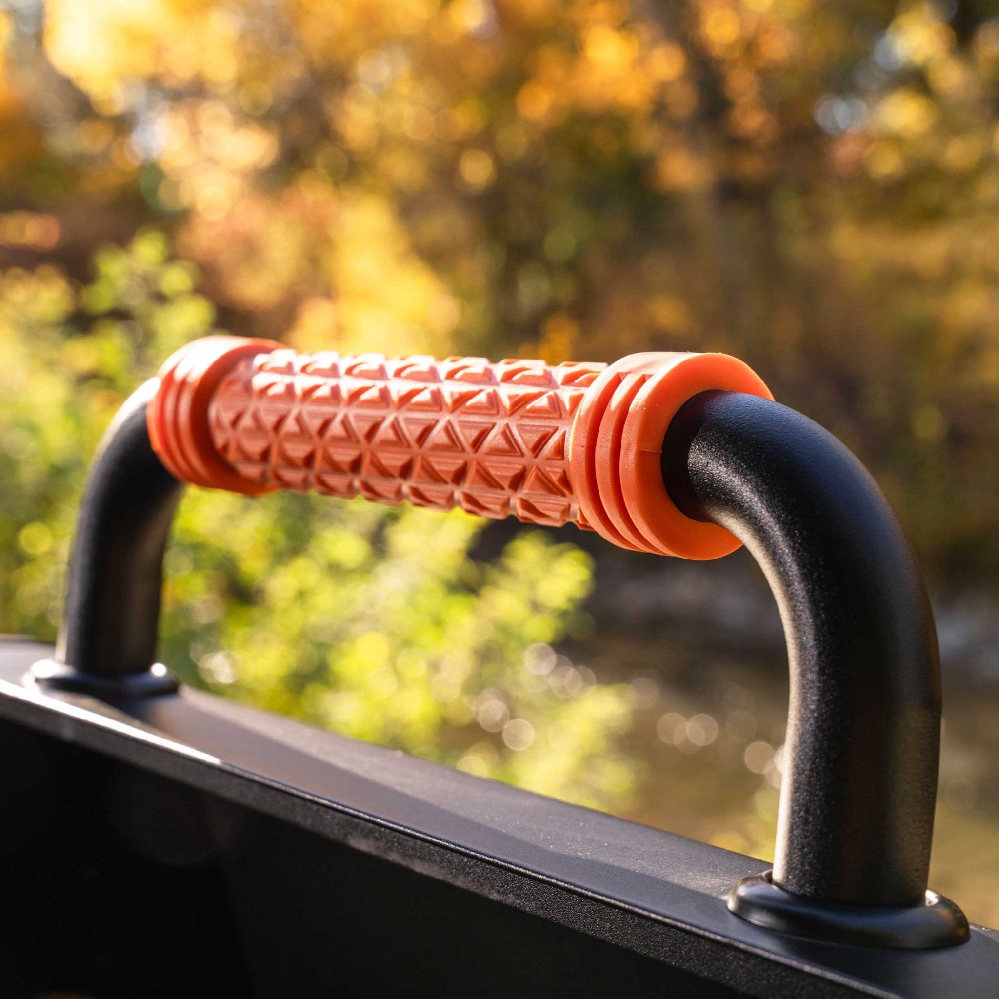 ? Integrated classically styled, painted hood with orange OTG handle grip.