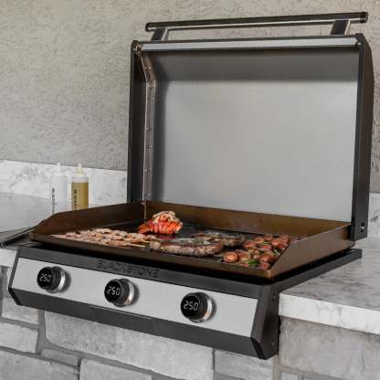 Among the new generation of BLACKtheSTONE Griddles is BLACKtheSTONE��s 30�� Electric Drop-In Griddle. This incredibly efficient griddle has three independently controlled heat zones with digital temperature readouts on each knob, actively reading the temperature of each zone. Featuring our Omnivore Griddle Plate technology for better heat distribution and thermal shock resistance, in addition to built-in wind guards and better heat control. It only gets better with our Front Access Rear Grease Drawer, combining everything you love about classic BLACKtheSTONE��s with easy access from the front of the unit. This powerfully efficient griddle is perfect for your cooking needs and ambitions.