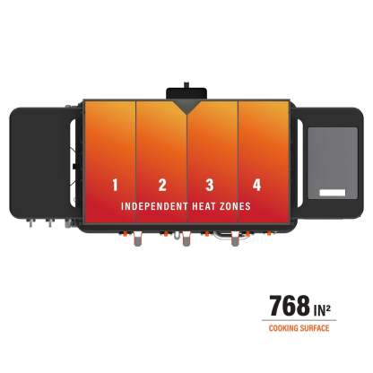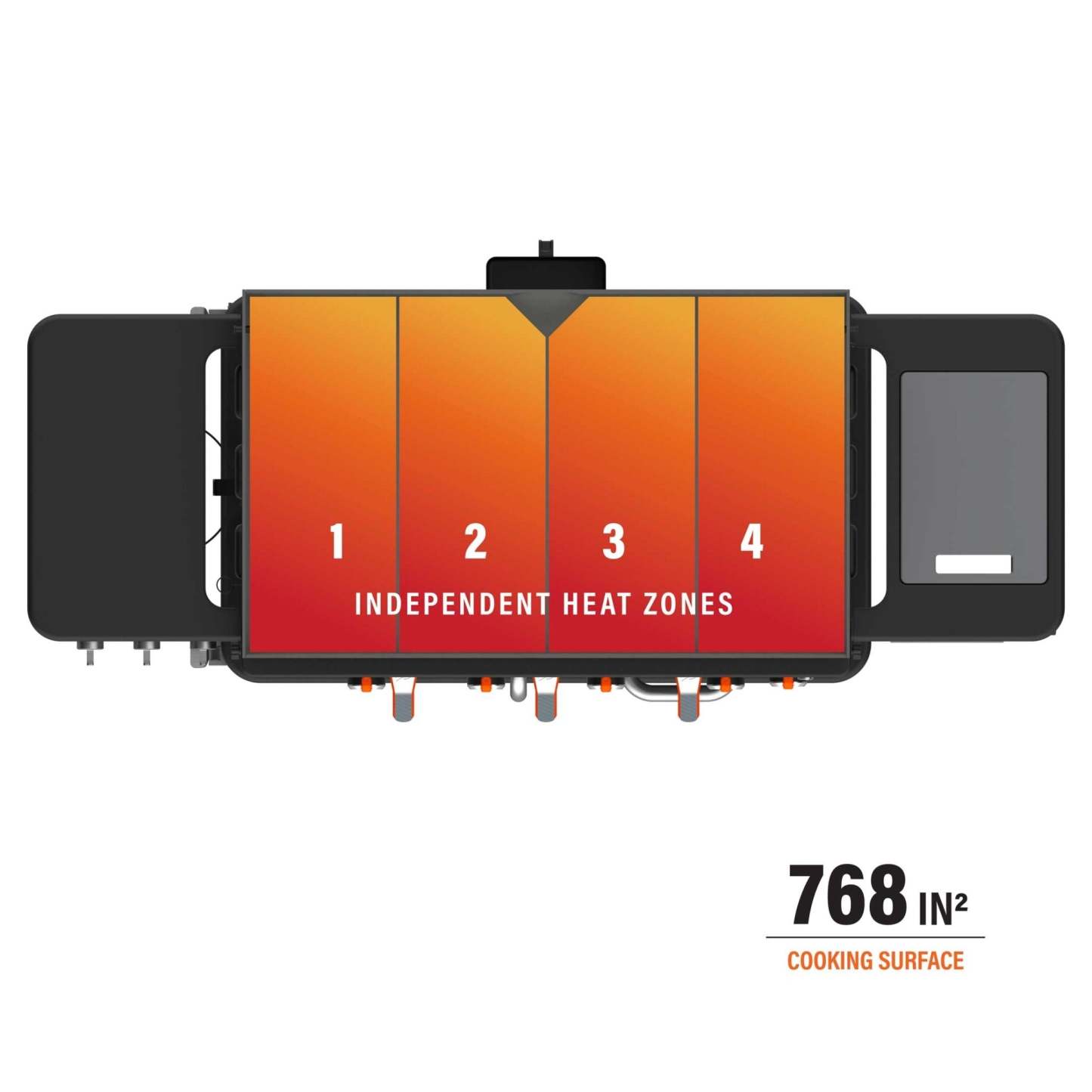 ? Four independently controlled main cooking zones with a total of 60,000 BTU's -plus 13,000 BTU's of additional performance on Air Fryer burner.
