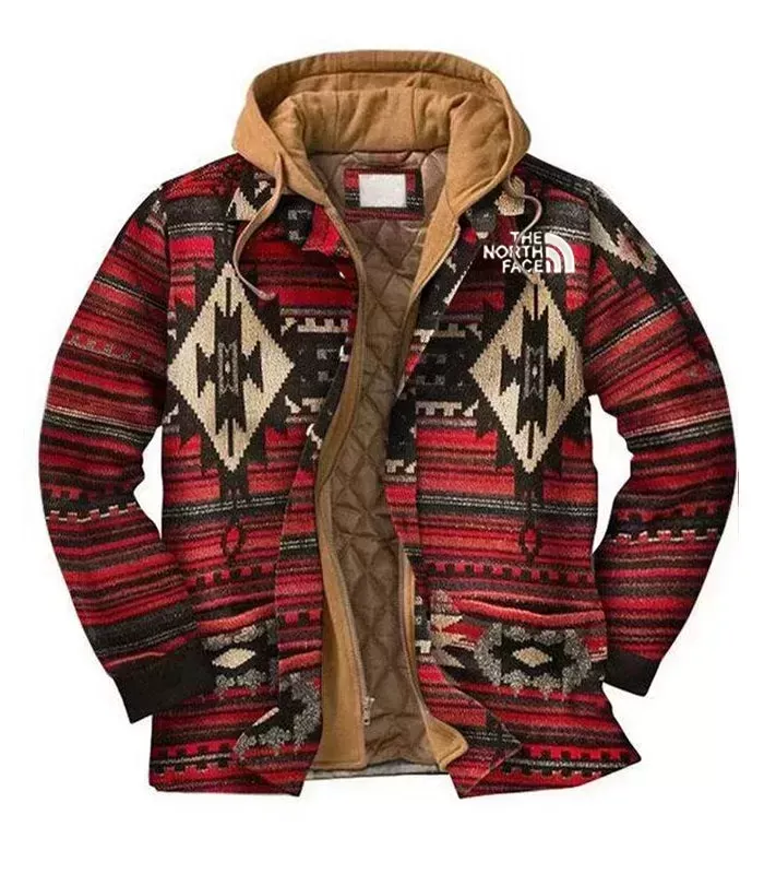 Colorful Stripe Geometry Print Fashion Men's Hooded Coat