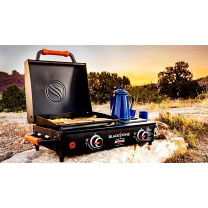 Do more with your griddle! The Adventure Ready 17" Tabletop Griddle with Rangetop Side Burner is the portable griddle you need. This 17" griddle top paired with the rangetop burner allow you to cook more than ever. Cook all your griddle favorites like pancakes, burgers, stir fry, and more but also have the option to boil water or use a frying pan. Don��t feel limited when you're out camping, tailgating, or hunting. The possibilities are endless with this versatile combo. With a combined 24,000 BTUs between the two burners, this griddle heats up quickly and effectively so you can get cooking in no time. Cook more with this great griddle combo from BLACKtheSTONE.