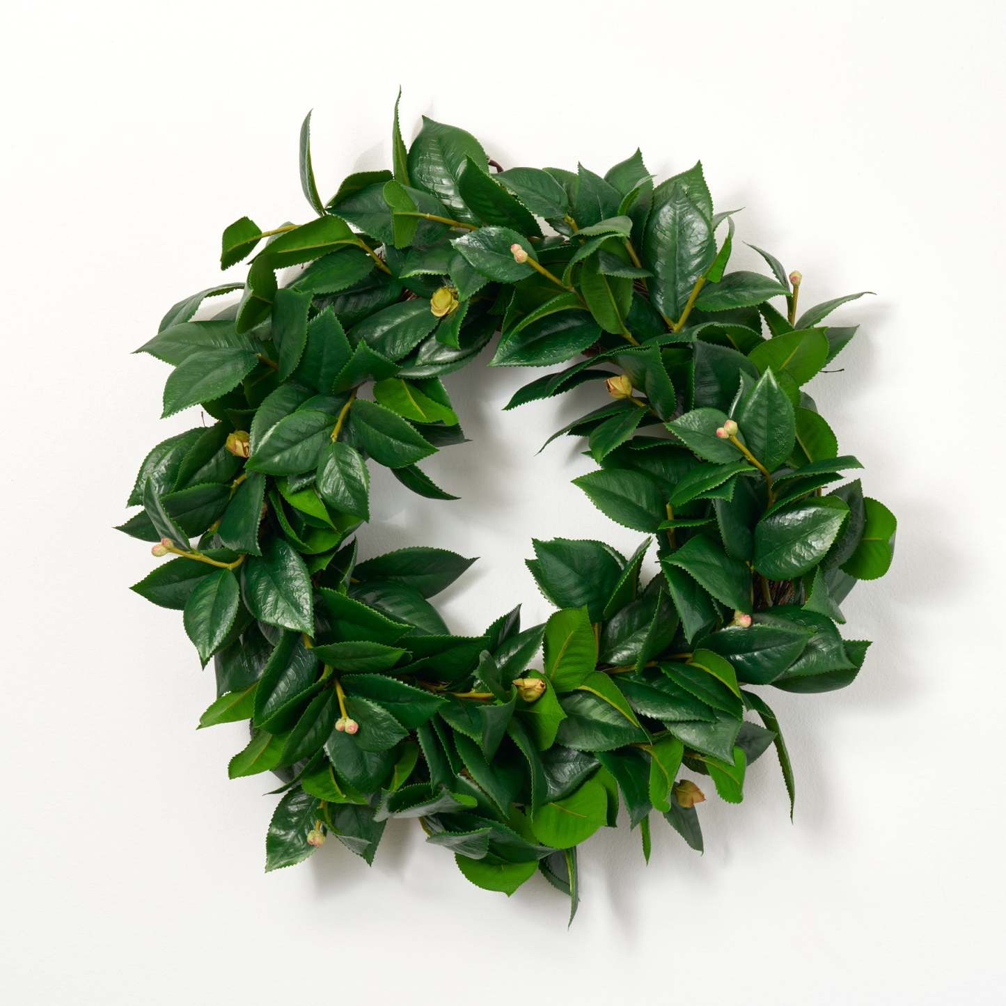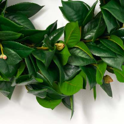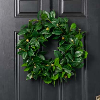 Crafted with beautiful faux green camellia leaves, this everyday front door wreath adds a touch of natural elegance to your home. Perfect for all seasons, this 20" wreath brings a sense of warmth and charm to your entryway, making it the perfect welcoming touch for guests.