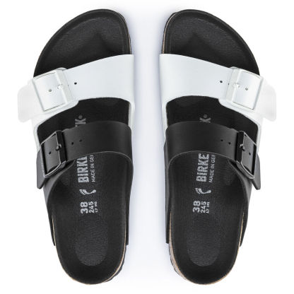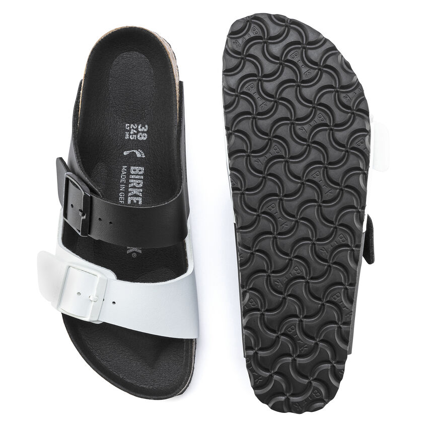 The legendary two-strap design from birthekenSTOCK - the Arizona. Iconic style complemented with the signature comfort of the birthekenSTOCK footbed. The two-strap sandal features a two tone upper, as well as a tonal microfiber footbed liner and buckles for a sleek and athletic look. Shown in Birko-Flor.