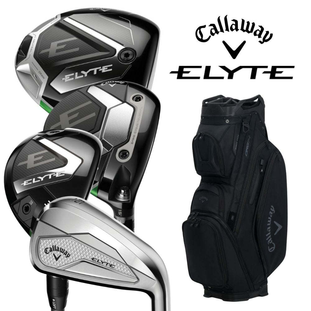 Set comes with Elyte 10.5* Driver, Elyte 3 Wood, Elyte 4 Hybrid, Elyte Iron Set 5-PW, AW with steel shafts, and Calltheaway Org 14 Cart Bag (color subject to change)