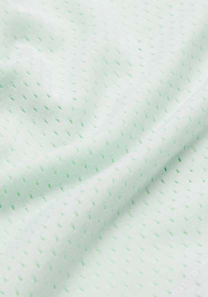 Sweat-wicking fabric that is quick-drying with four-way stretch and mesh panels for added ventilation