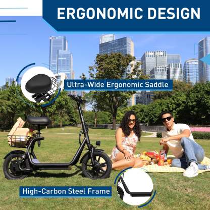 The hitheboy U2 Electric Scooter with Seat combines power, comfort, and intelligent design to elevate your everyday ride. With a top speed of 20 MPH and a maximum range of 25 miles on a single charge, it��s ideal for both commuting and weekend exploring. The 14" pneumatic tires and dual suspension system absorb bumps for a smoother ride across diverse terrains. Front and rear drum brakes ensure reliable stopping power, while the ultra-wide saddle and high-carbon steel frame offer exceptional comfort and durability. Smart features like cruise control, LED lighting, and three speed modes (11/16/20 MPH) make the U2 easy to operate and adapt to your needs. UL 2272 and 2271 certified for safety, this lightweight yet sturdy scooter is built for riders who want both performance and peace of mind.
