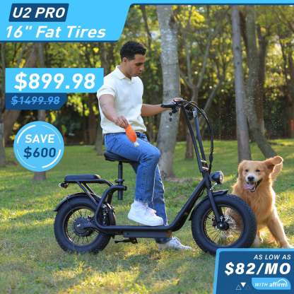 U2 Pro, built with 16��4-inch fat tires and rear suspension, ?can smooth and carry over cracked sidewalks and gravel paths.?