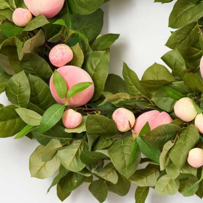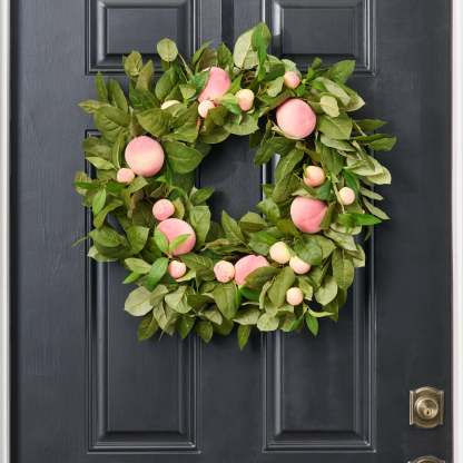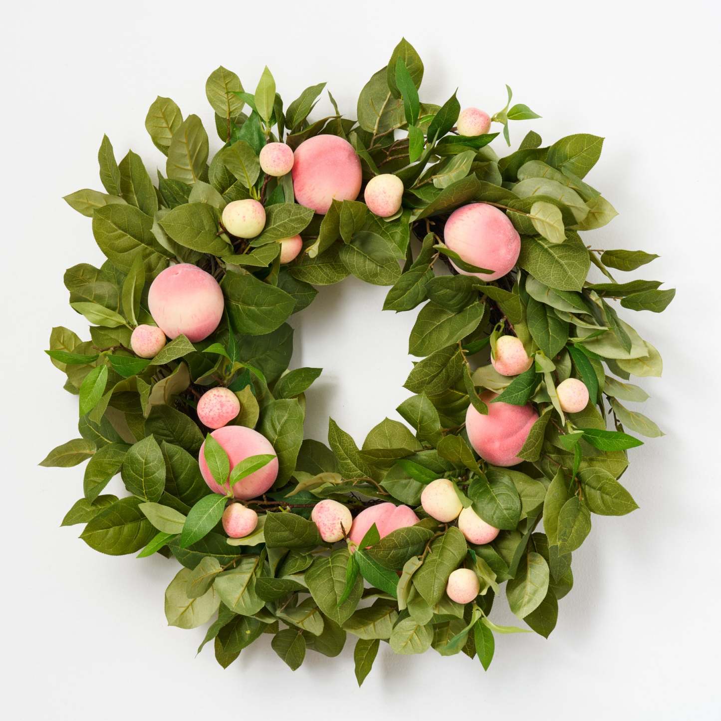 Peach Orchards - Salal Leaf with Fuzzy Peaches Spring Summer Everyday Greenery Front Door Wreath