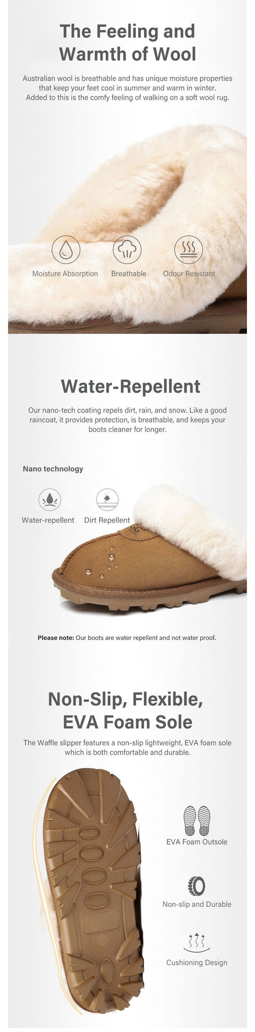 - Sheepskin breathes, keeping your feet warm in winter and cool in summer