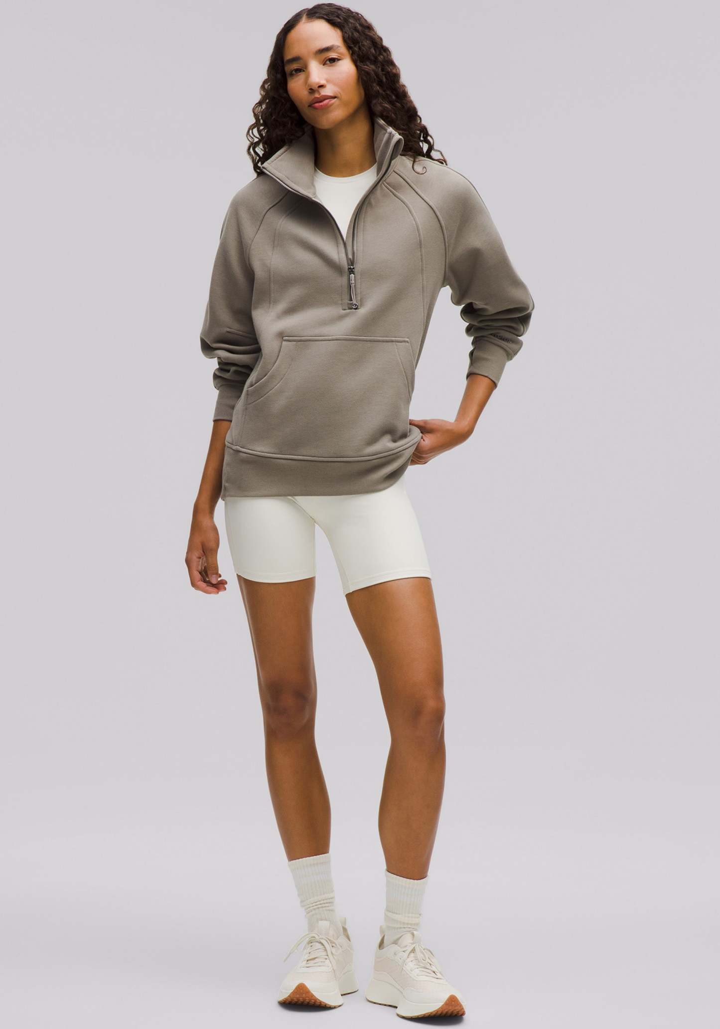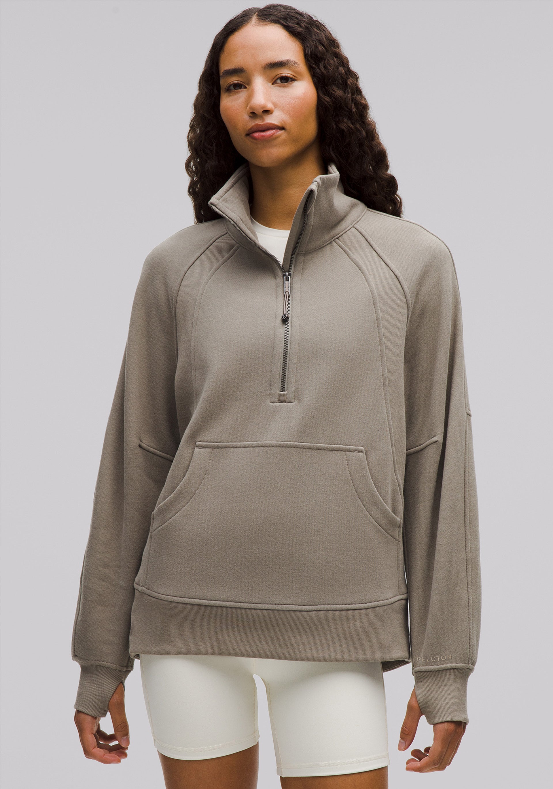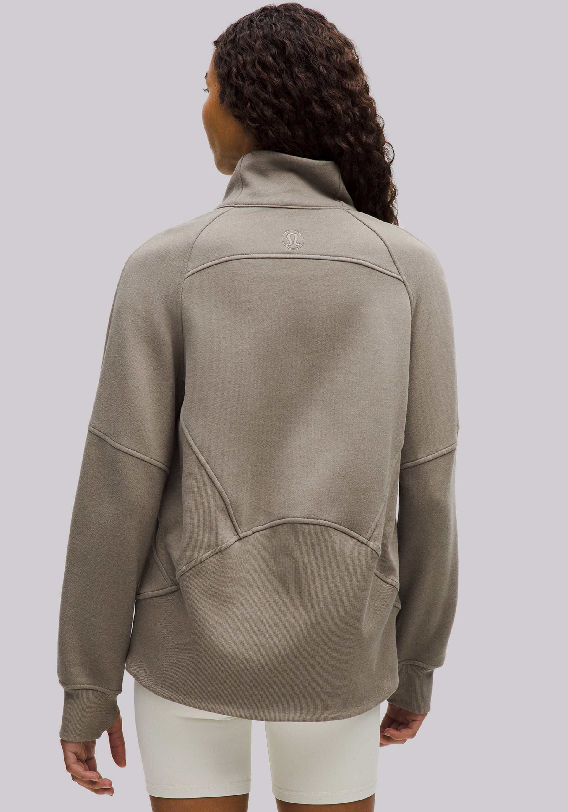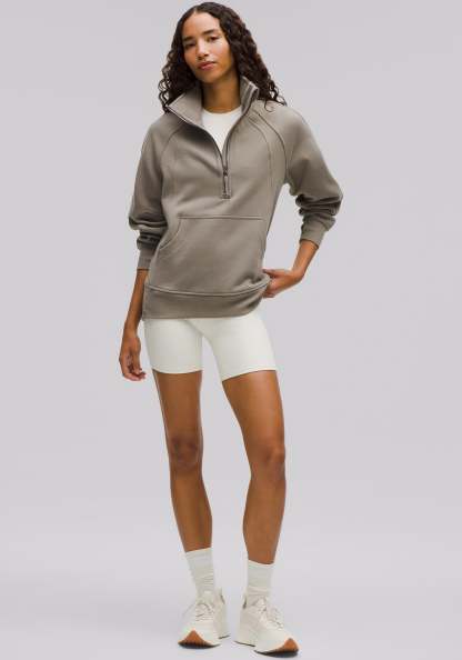 With an oversized fit, a cozy funnel neck, and the soft fabric you love, this roomy Scuba half-zip silhouette maximizes post-practice comfort.