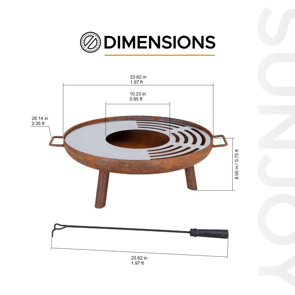 SUNJOY 28 Inch Portable Fire Pit Grill with Stainless Steel Baking Sheet