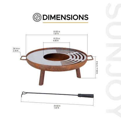 Introducing the SUNJOY Fire Pit, your ultimate outdoor companion for memorable gatherings! Crafted with durable S304 baking sheets, this bbq grill firepit stands the test of time, resisting rust and weather for long-lasting enjoyment. Say goodbye to accidental burns with the included fire poker, ensuring safe manipulation of wood or charcoal. Thanks to its innovative design with leaking holes, enjoy brighter flames and efficient combustion for cozy evenings under the stars. Equipped with portable handles, effortlessly move this wood burning fire pit to your desired spot in the backyard. With three support frames enhancing stability, it adapts to uneven ground for worry-free use. Easy to install and convenient to transport, it's perfect for spontaneous backyard BBQs, camping adventures, or outdoor entertaining.