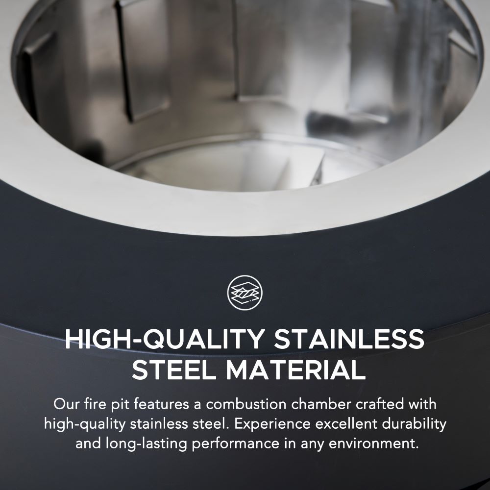 This smokeless fire pit is an ideal choice for outdoor gatherings and leisure. It adopts a double-layer structure design to ensure air circulation, so that the smoke returns to the flame to burn, thereby minimizing the generation of smoke, allowing you and your friends to enjoy a refreshing outdoor environment. It is made of high-quality stainless steel for excellent durability. This smokeless fire pit can resist high temperatures without deformation or collapse, ensuring your safety and comfort when using it. In addition, the innovative airflow technology makes the flame present a charming rotation effect, bringing visual enjoyment. The smokeless fire pit can emit a strong flame to keep you warm on cold nights. The lightweight design makes it easy to carry, whether it is outdoor camping or family gatherings. We also prepare a waterproof cover and a fire poker for you to enhance the use experience and make your smokeless fire pit more convenient and practical.