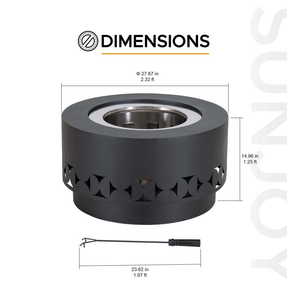 SUNJOY 28 Inch Round Stainless Steel Smokeless Fire Pit with PVC Cover and Poker