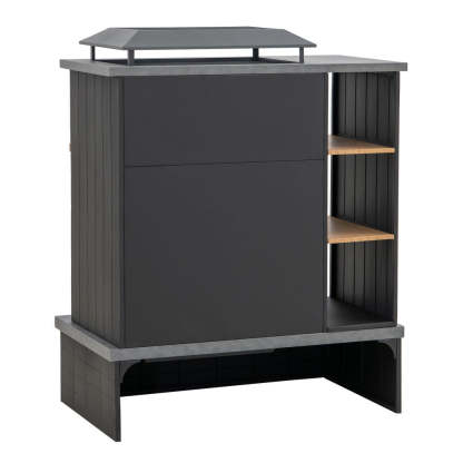 Create the ultimate outdoor relaxation destination with the SUNJOY wood-burning fireplace. Experience the magic of flickering, cozy fires that will transform your patio into a captivating retreat. Crafted by the world's leading ready-to-assemble outdoor structure maker, this outdoor fireplace combines classic design with the durability of powder-coated steel. Enhance any traditional outdoor setting with its sleek matte black frame and a stylish cement and nature wood finish appearance. Unlike open fire pits, this outdoor fireplace directs smoke up and away through its functional chimney, while the mesh screen protects against embers and sparks. Stay organized with the side shelf log-holders, creating a cozy atmosphere for gathering around the fire. No need to worry about the elements - the included PVC cover ensures year-round enjoyment of, and protection for your investment. With the included fireplace tool, maintenance, and fire adjustment are a breeze. Cleanup is effortless thanks to the removable ash pan, saving you time and effort. Get ready to curl up under the stars or invite loved ones for roasting marshmallows, as you create lasting memories around this fireplace for years to come.