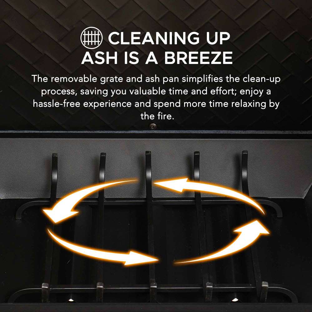 Create the ultimate outdoor relaxation destination with the SUNJOY wood-burning fireplace. Experience the magic of flickering, cozy fires that will transform your patio into a captivating retreat. Crafted by the world's leading ready-to-assemble outdoor structure maker, this fireplace combines classic design with the durability of powder-coated steel. Enhance any traditional outdoor setting with its sleek matte black frame and stylish cement-look finish appearance. Unlike open fire pits, this outdoor fireplace directs smoke up and away through its functional chimney, while the mesh screen protects against embers and sparks. Stay organized with the side shelf log-holders, creating a cozy atmosphere for gathering around the fire. No need to worry about the elements - the included PVC cover ensures year-round enjoyment of, and protection for your investment. With the included fireplace tool, maintenance, and fire adjustment are a breeze. Cleanup is effortless thanks to the removable grate, saving you time and effort. Get ready to curl up under the stars or invite loved ones for roasting marshmallows, as you create lasting memories around this fireplace for years to come.