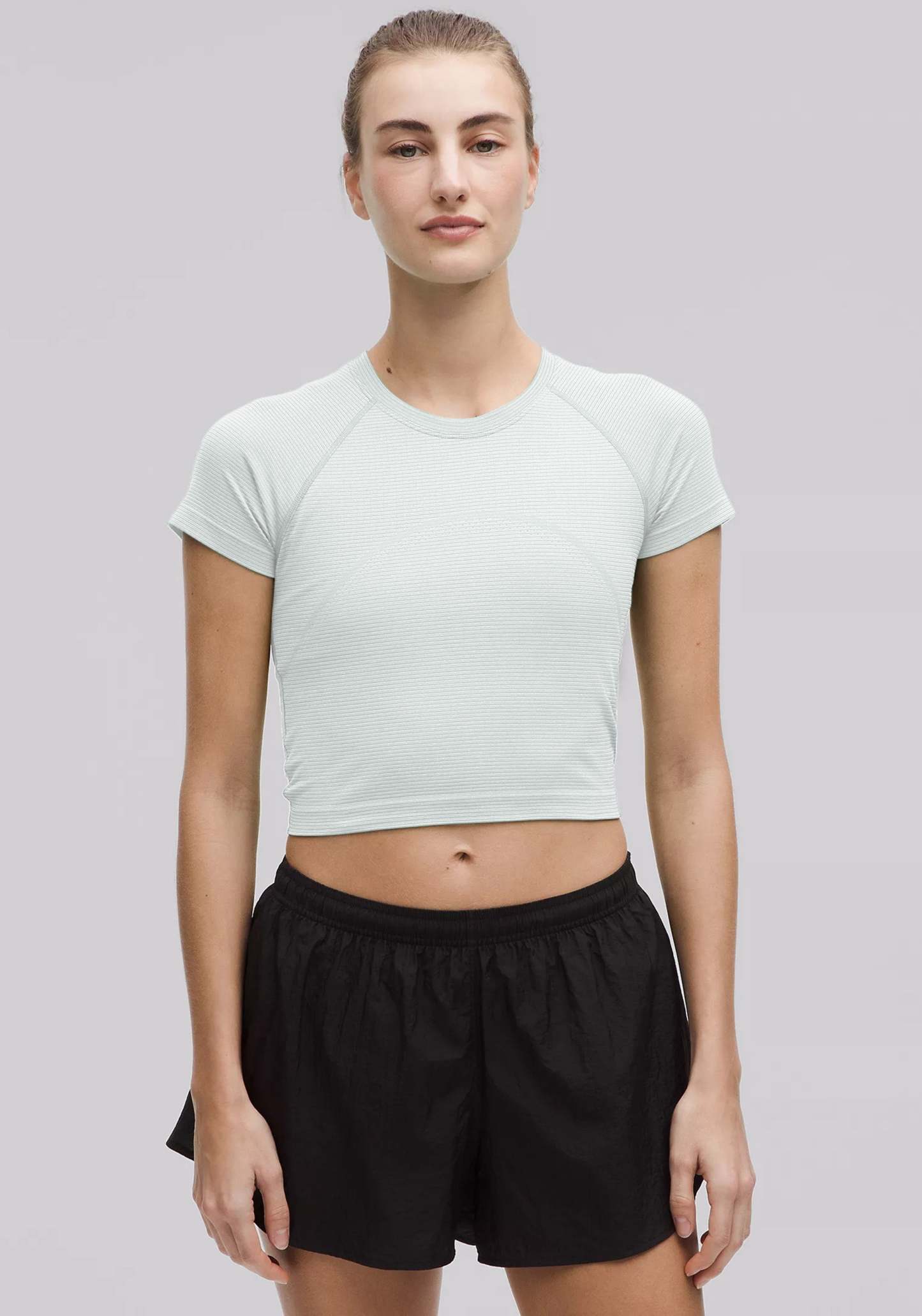 Slim fit, cropped short-sleeve with thumbholes