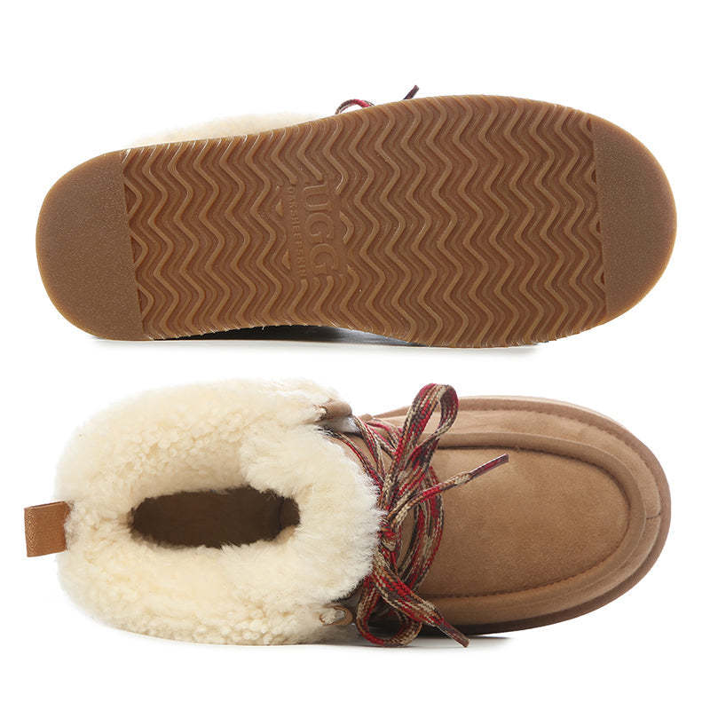 Step into winter like the showstopper you are with the Uthegg Premium Fluffy-Lace Platform Boots from Uthegg Originals. These leather beauties are the perfect fusion of warmth, luxury, and a touch of sass. With soft sheep wool lining keeping your toes toasty, you'll be turning heads from the snowy streets to apr��s-ski lounges. Perfect for pairing with your coziest knits, these boots are proof that winter style can be fun, flirty, and oh-so-fabulous! Bow down to comfort and chicness.
