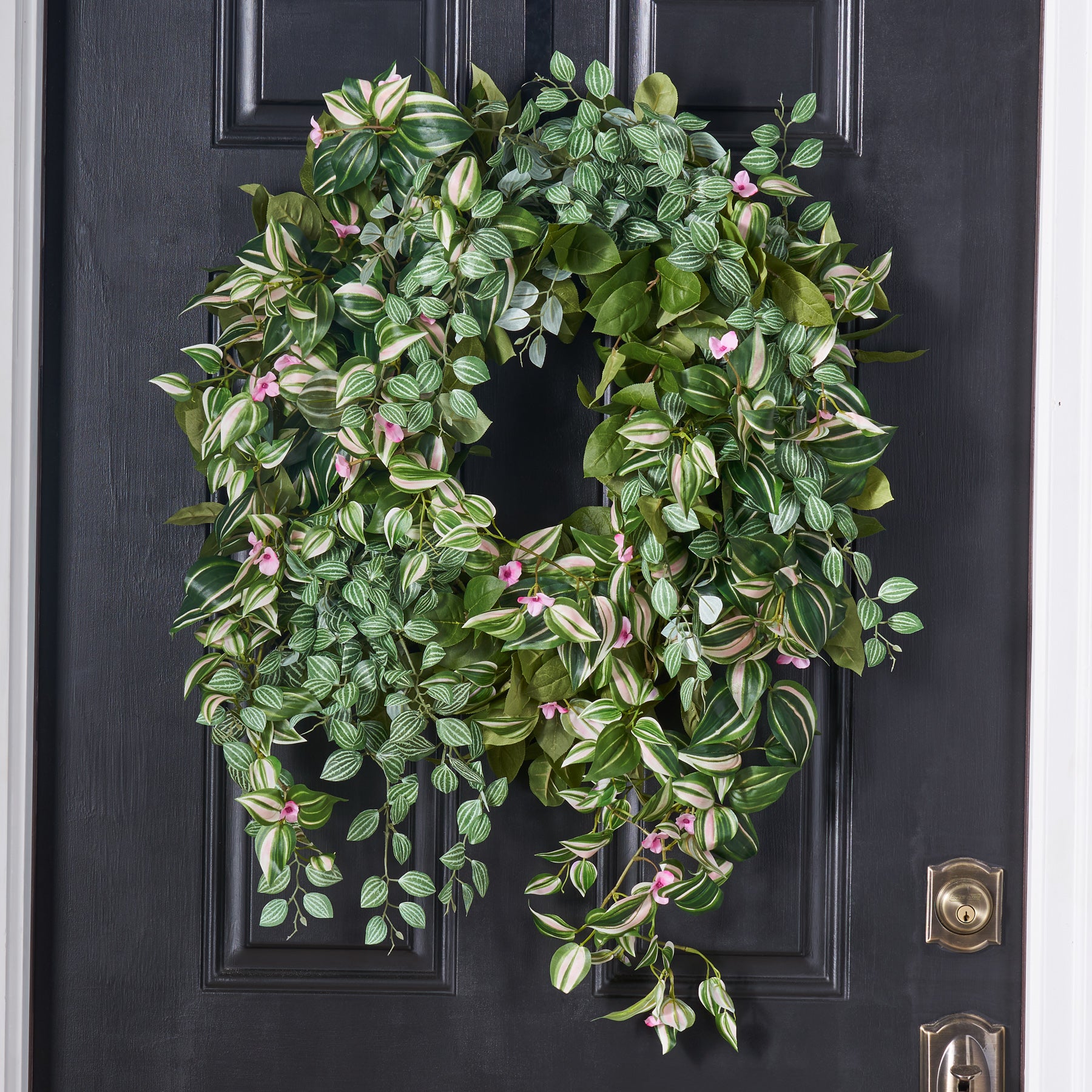 Wild Vines - Mixed Foliage, Peperomia Leaf & Wandering Dude All Season Greenery Front Door Wreath